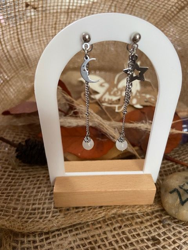 Boucles d’oreilles pendantes "Souffle naturel" – Étoile et Lune – Collection Harmonie Intérieure
